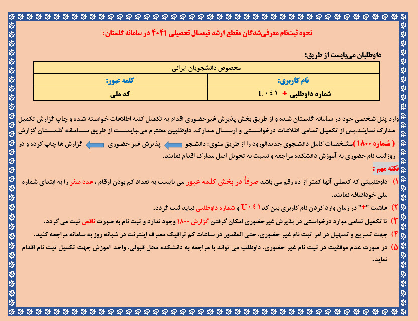 ✅ثبت نام غیر حضوری در سامانه گلستان:
